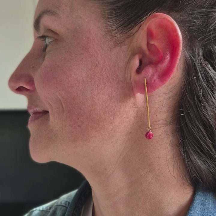 The Design: A streamlined horizontal silhouette. These earrings feature cream and red rectangular blocks that sit flush against a sleek gold beam.